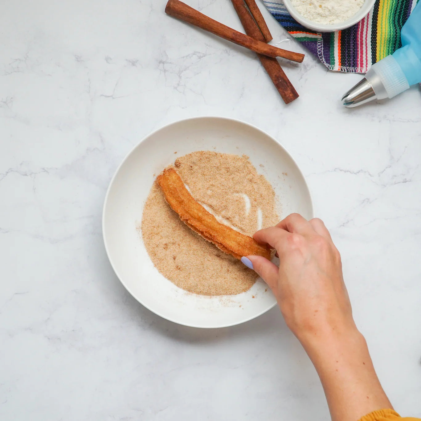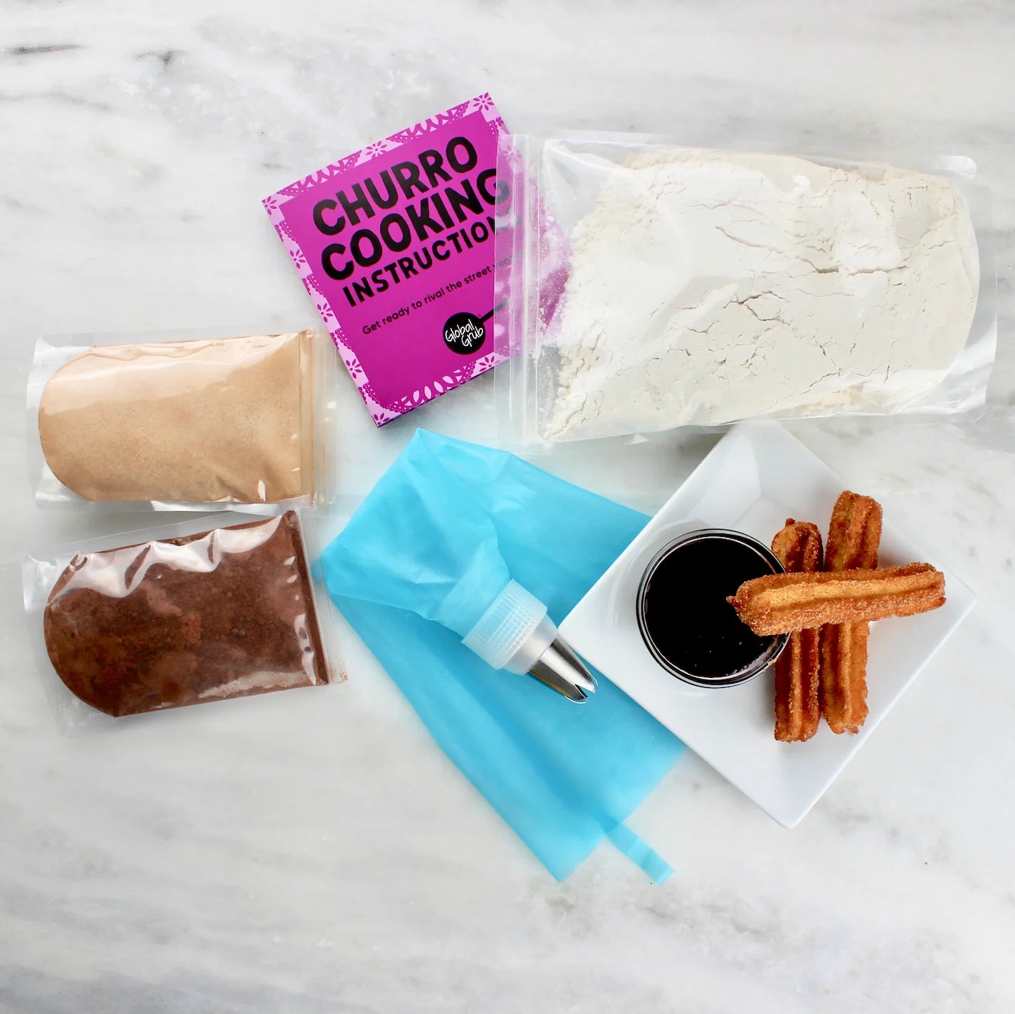 Rival the food carts and treat yourself to new memories of churros, at home... because there's nothing like freshly fried pastry sticks coated in cinnamon sugar with decadent chocolate dipping sauce! This DIY Churro Kit comes with just about everything you need to easily make about 40 homemade churros (2 batches of 20). The included piping set creates the classic churro shape with ridges.
